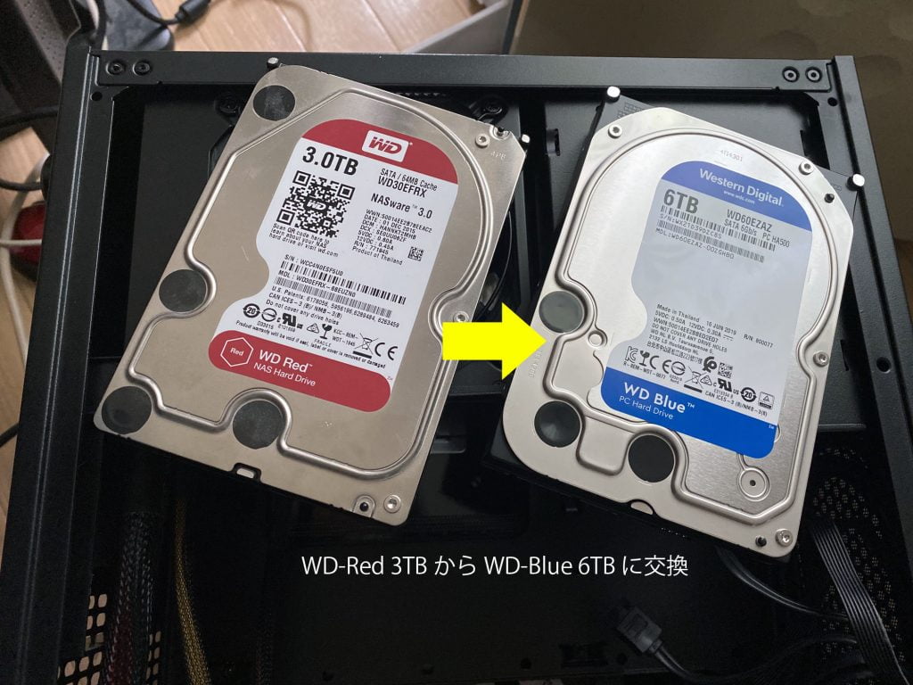 今回、HDD換装用に用意したのは、WD-Blueの6TBが2基。