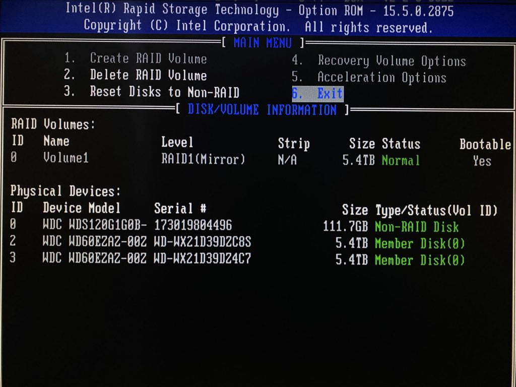 HDDを入れ替えて最初にやることは、RAID BIOSを起動してRAID1の構築。