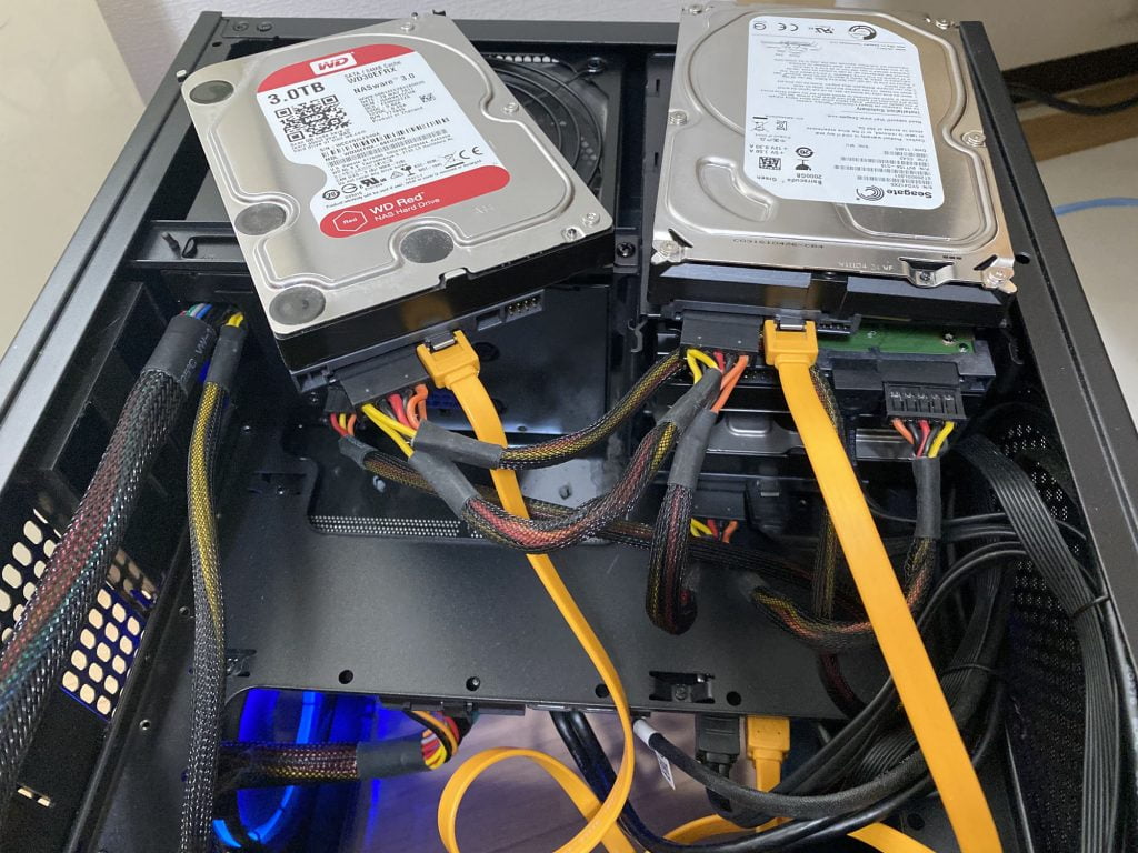 自宅サーバーでは3TBを2基付けてRAID1(ミラーリング)で使っています。