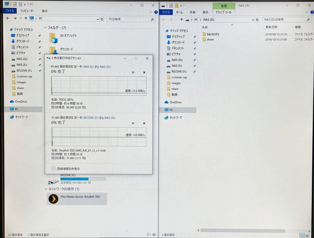 途中でSeagateがエラー出して読めなくなったり(元々SMARTエラーあり)コピーが途中で止まってしまったり、何だかんだで昼の14時から夜の23時頃までかかりました。