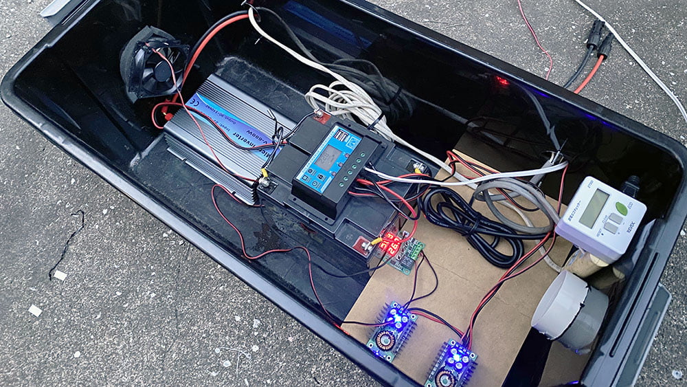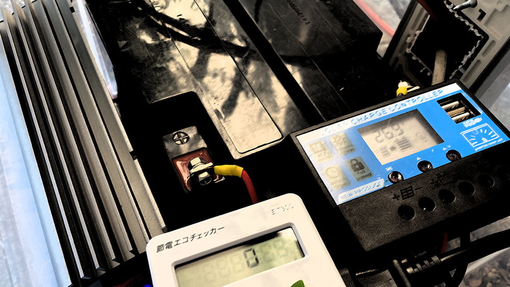 廃熱機構の無い小さなボックス内に詰め込まれているので、チャージコントローラーやバッテリーにも良くない環境ということです。