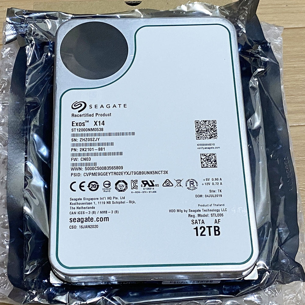 今回のchiaファーミングのために、メーカーリファビッシュ品の Seagate EXOS X14 12TB を格安で見つけたので購入しました。