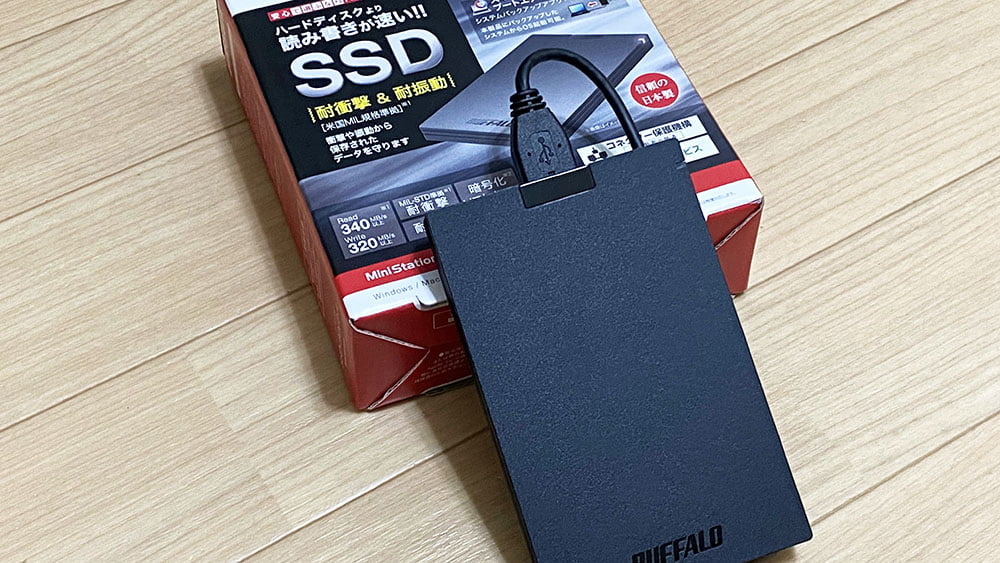 ということで、USB3.0接続の外付けSSDを用意してみました。