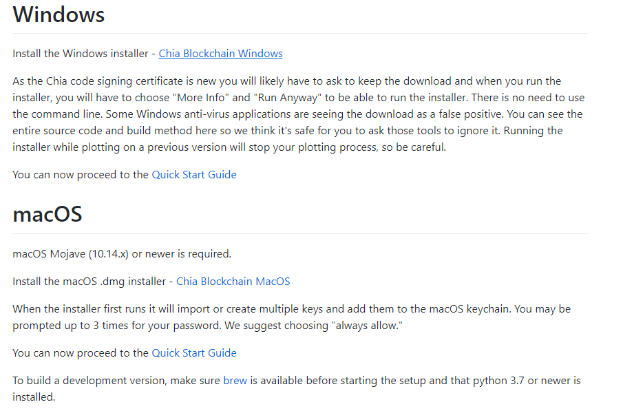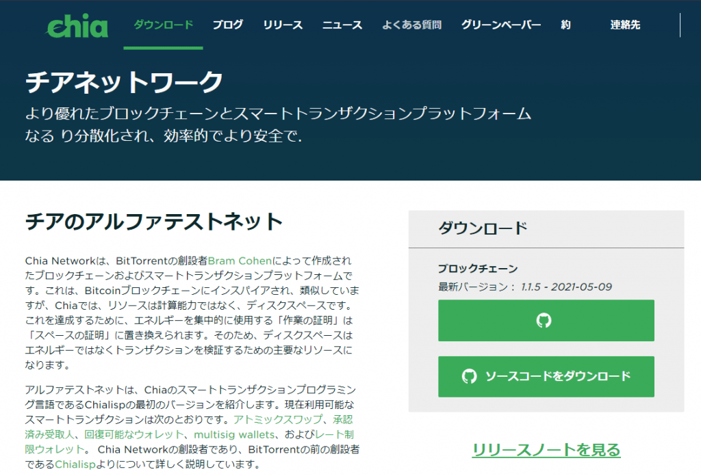 Chia Network 公式のページからマイナープログラムをダウンロード、インストールします。