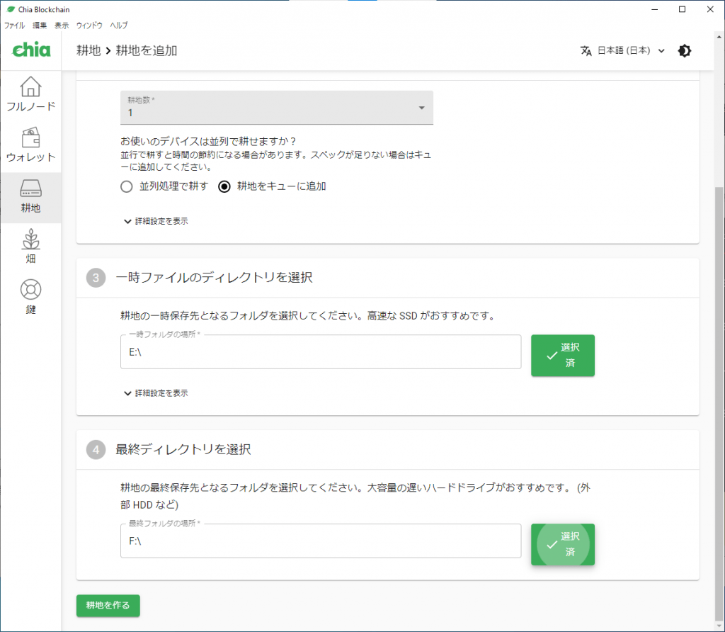 耕地はできるだけ多く作る必要があります。とにかくHDDの容量が必要になります。
