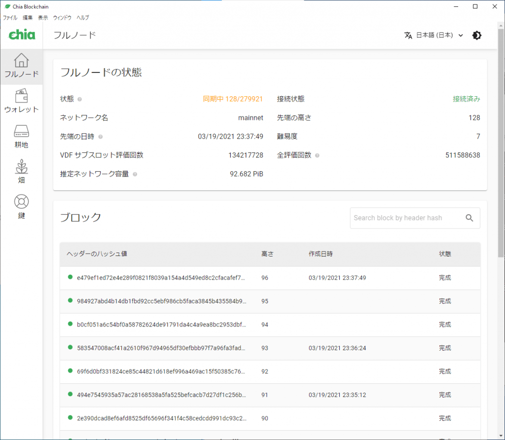 上記の Chia Blockchain Windows のリンクからダウンロードします。