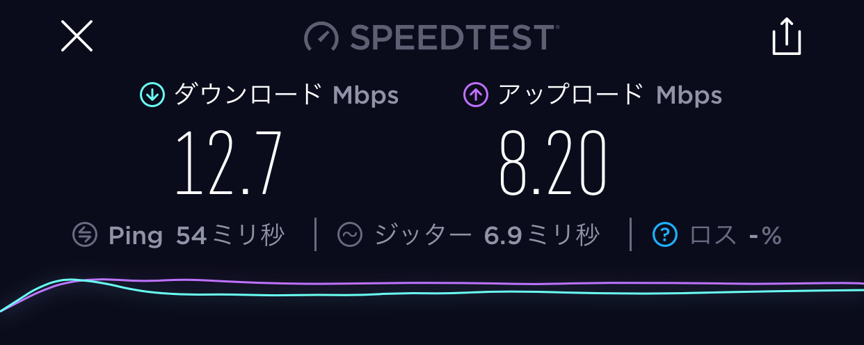 通信速度は自宅(ちょっと電波悪い場所)でSPEEDTESTした感じでは、10M程度で超安定の速度が出ていました。