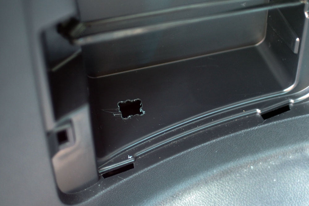 車の内装に使われているプラスチックは柔らかいので、穴あけ加工は楽だね。