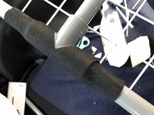 同様に棚の塩ビパイプにもスポンジを貼り付け。