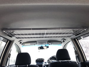 サンシェードや傘や敷物等、長物を乗せておくのに車内の天井に棚的なものが欲しくて、製品を買おうとすると結構高いので、自作した。