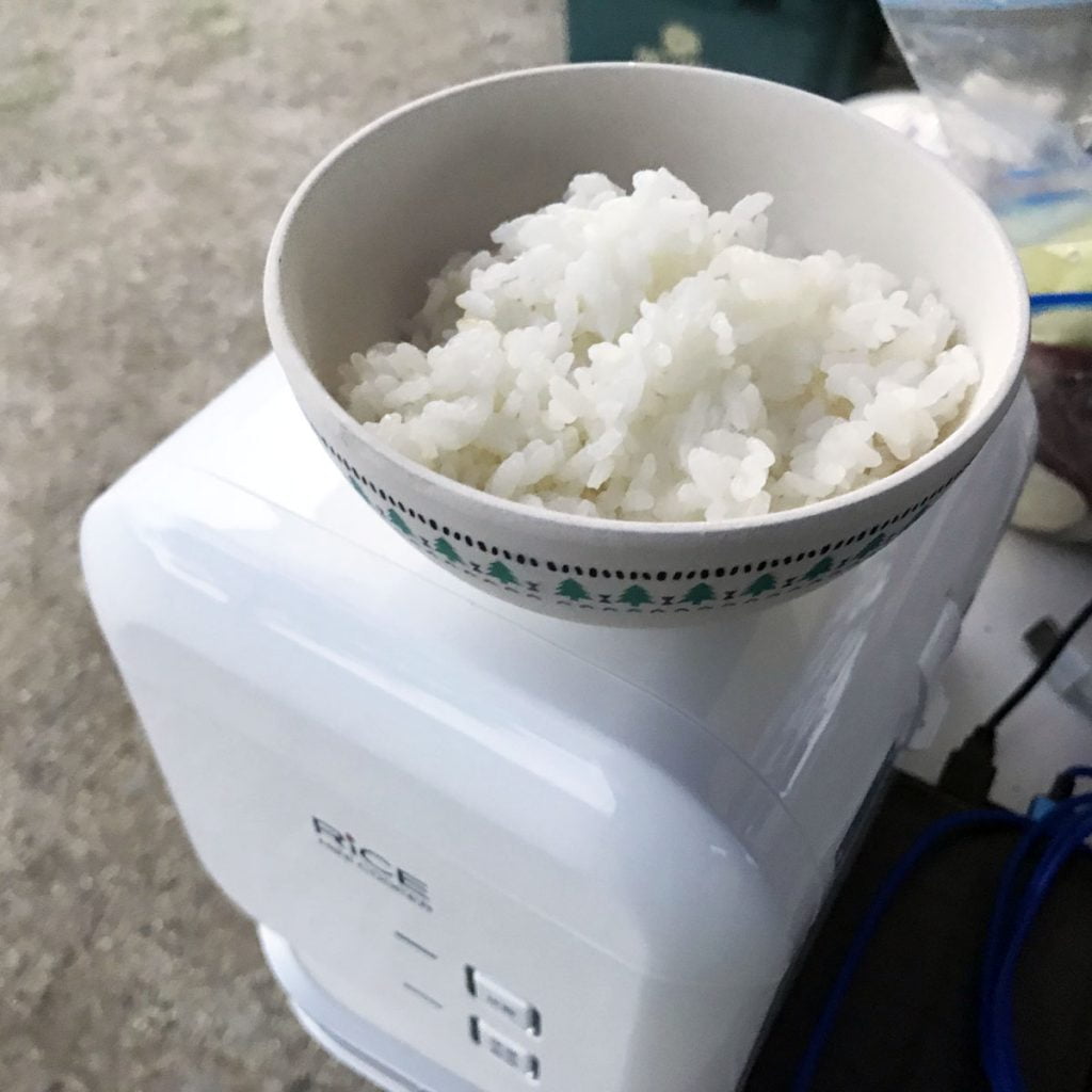 キャンプで炊飯器使うとか邪道かもしれないけど、いいじゃん楽だし美味しいし。