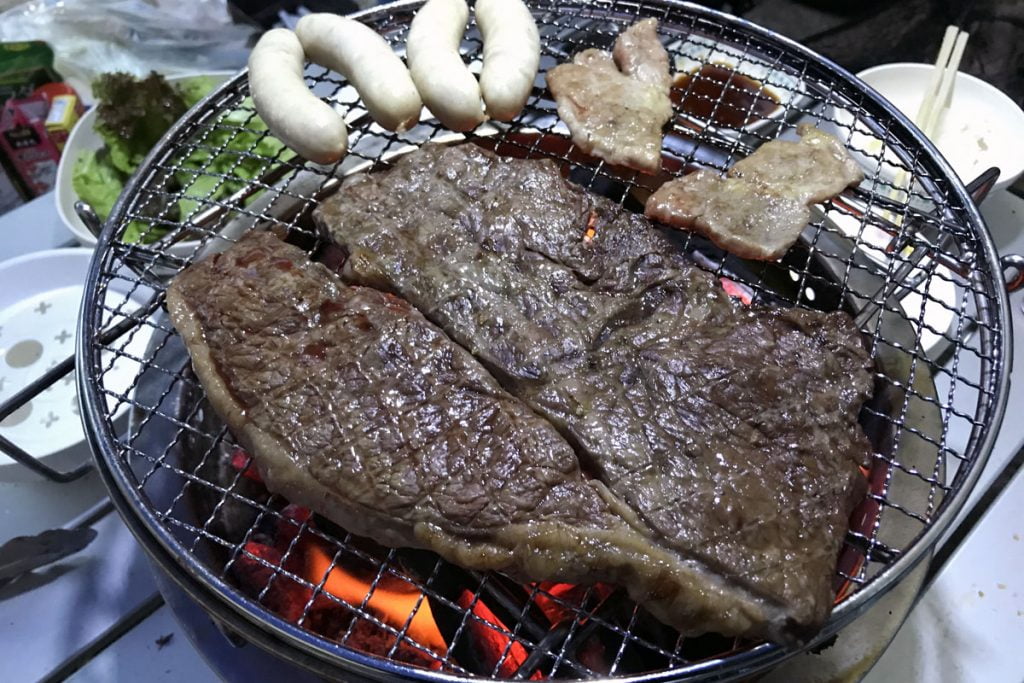 夕食はアウトドア定番のBBQ
